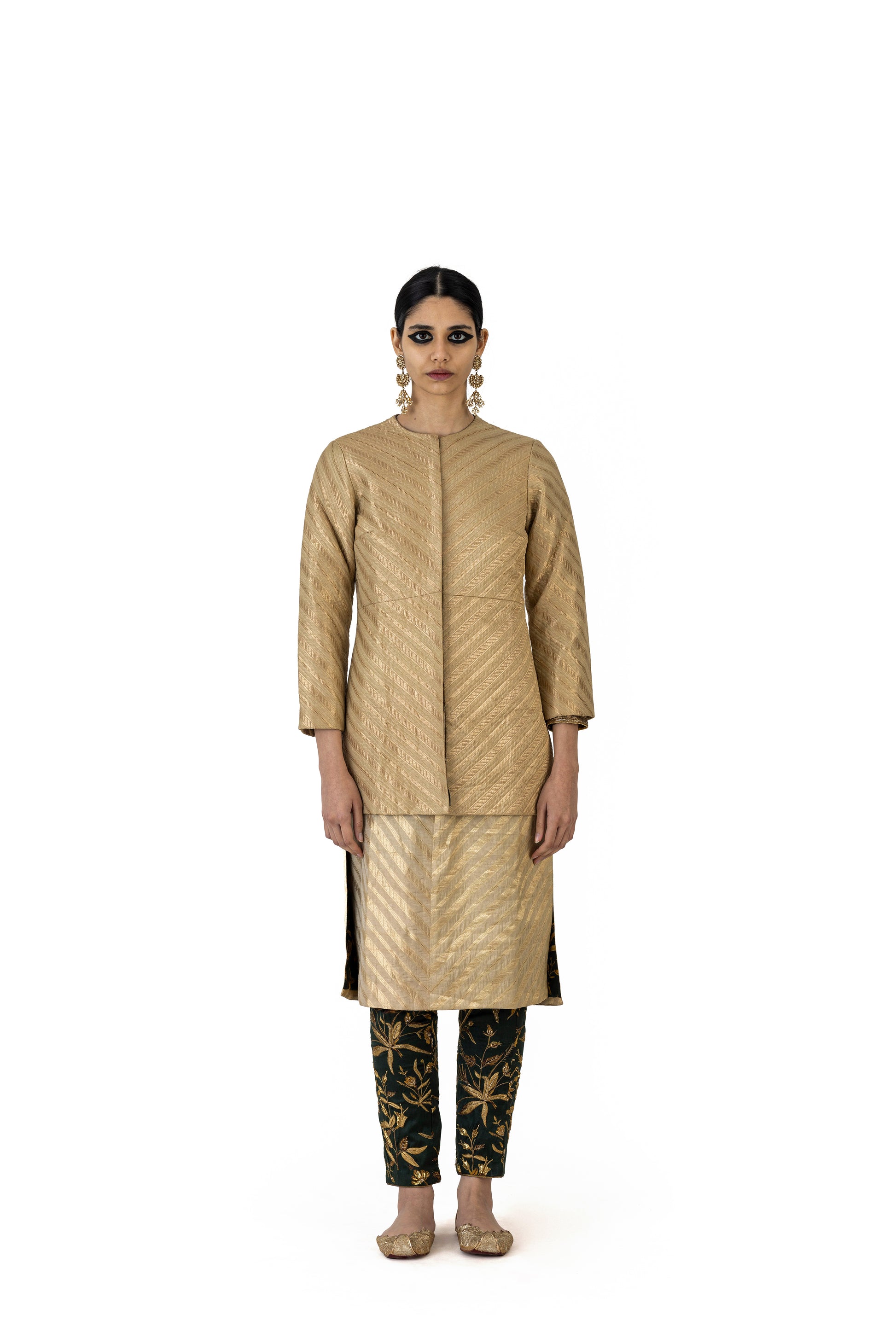 Each item is measured to help you choose the correct fit. Please refer to the garment's measurements below to select the appropriate size. For assistance with customized sizing, please contact Customer Care.
